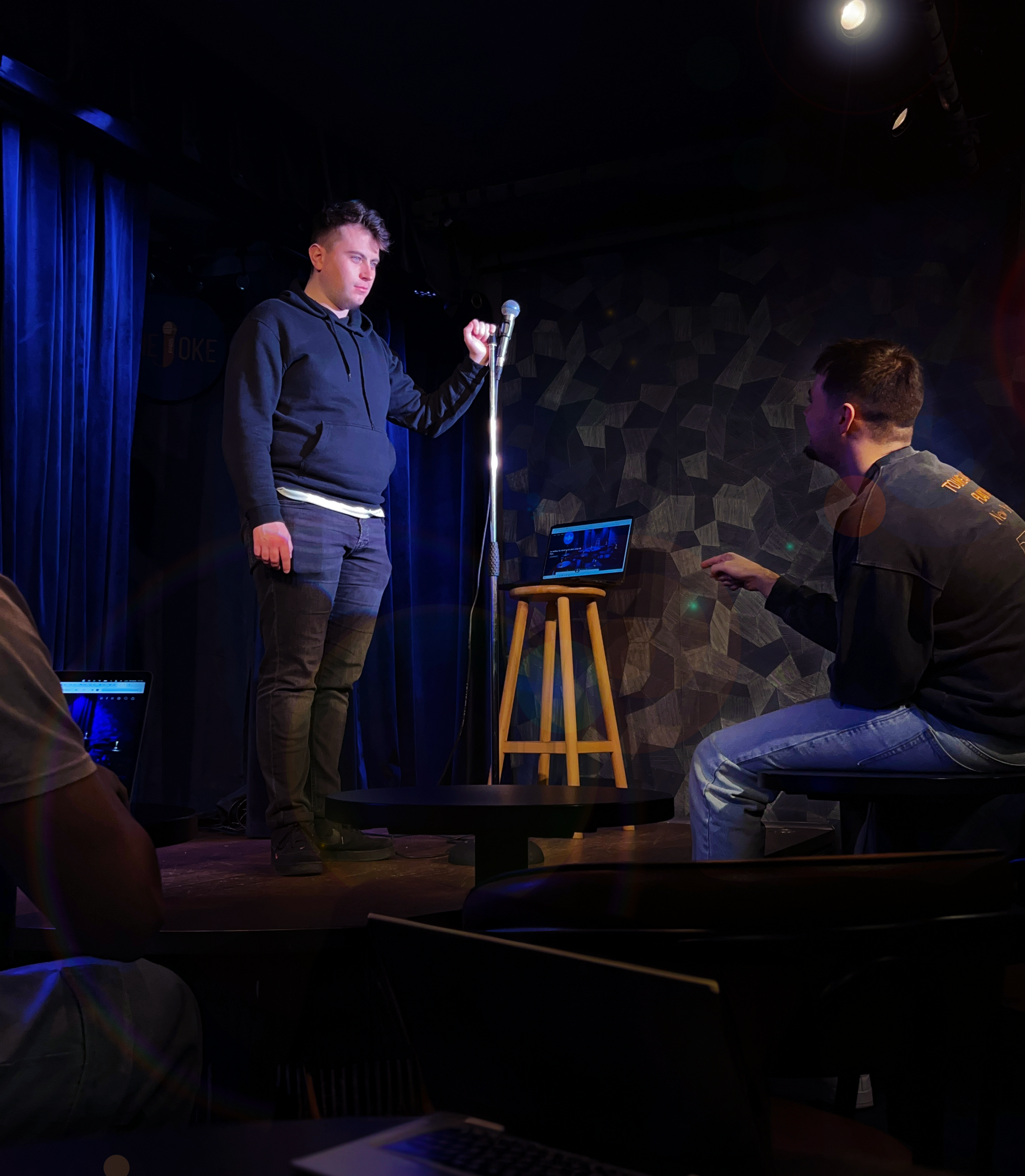 Dès le début de ta formation, tu testeras ton travail en conditions réelles sur la scène du Joke Comedy Club lors de nos plateaux. Rien de tel que l’expérience face à un vrai public pour progresser vite et gagner en confiance.
